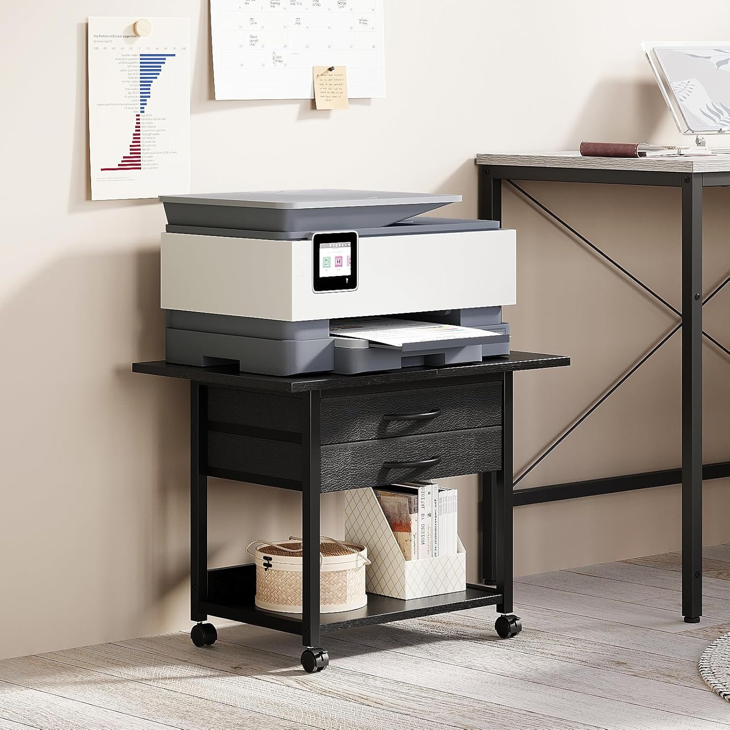 Large Printer Stand with Storage Fabric Drawer Under Desk Printer Tabl…