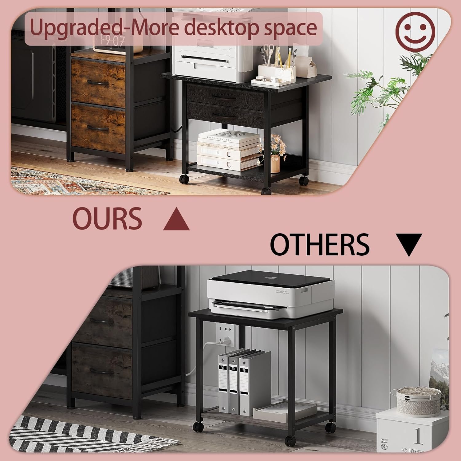 【Versatile & Space-Saving】More than a printer stand—Our multifunctional printer shelf can also be used as office organization, dorm essential, book shelf, storage shelf, and so on. It can be used in home, office, dorm, craft room as an ideal organizer and storage