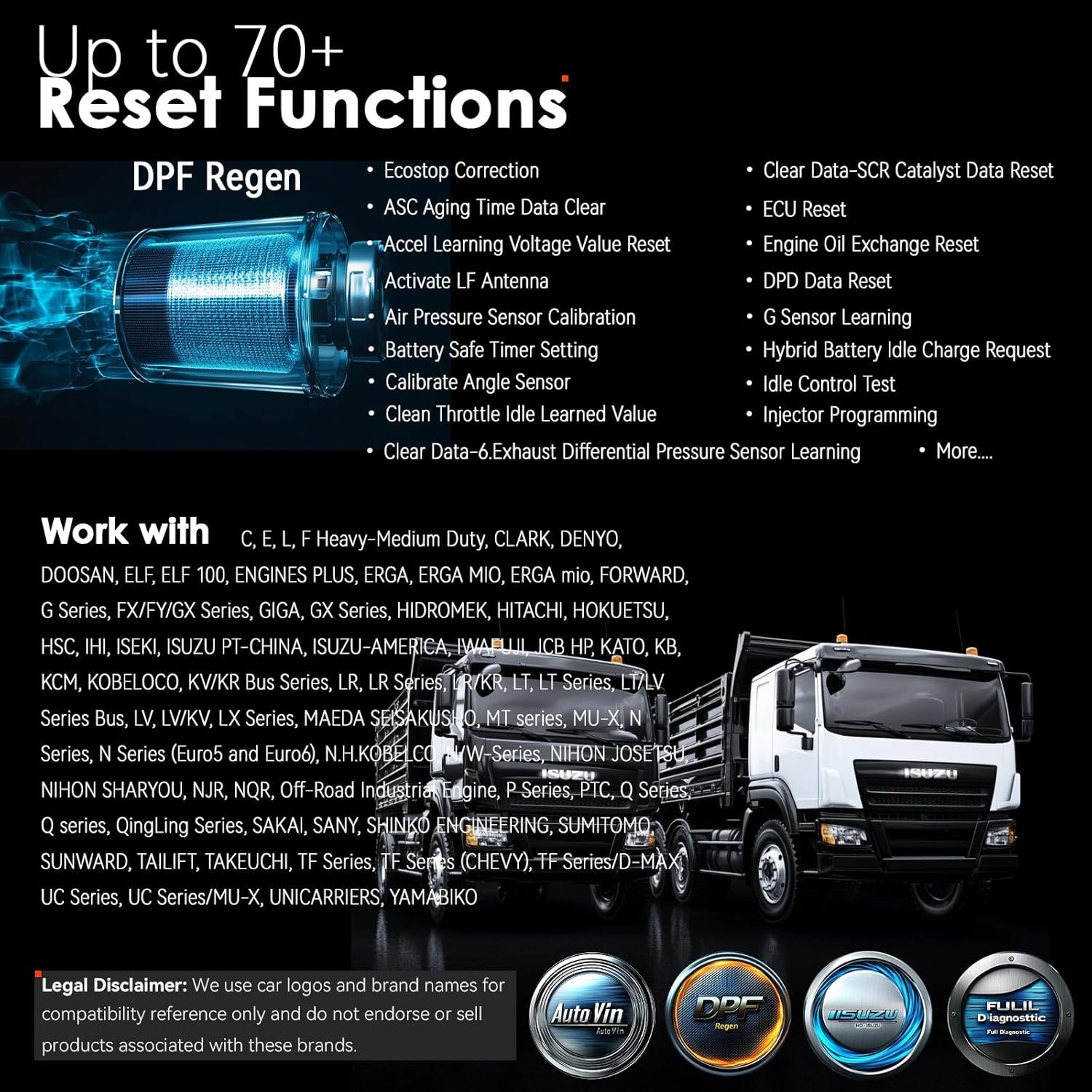 【Compatible with Isuzu Diesel】 Custom-developed for a wide range of diesel vehicle models, including but not limited to C, E, L, F, G Series, FX/FY/GX Series, N Series,TF Series, HITACHI, Off-Road Industrial Engine and more. Legal Disclaimer: The vehicle brands and models listed are provided for compatibility reference only and do not imply endorsement or the sale of products related to these brands.