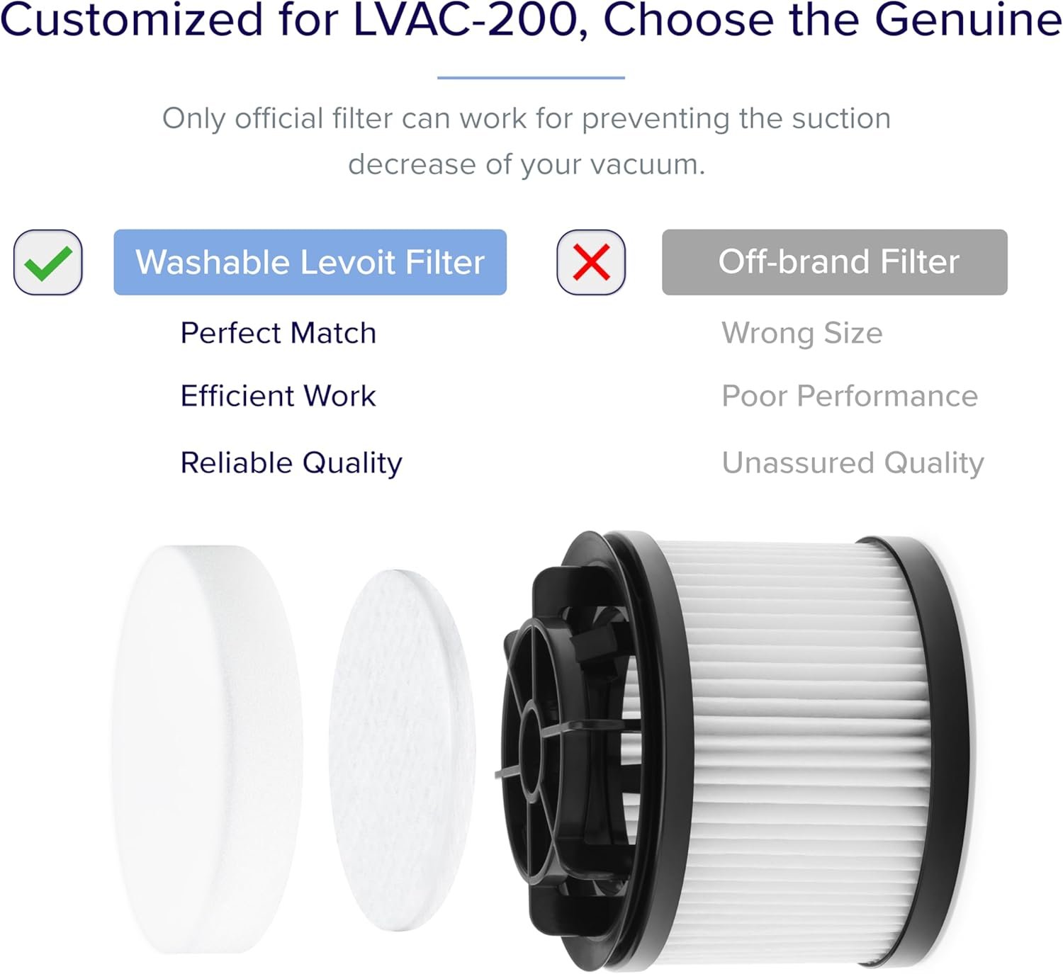 𝐎𝐟𝐟𝐢𝐜𝐢𝐚𝐥 𝐋𝐞𝐯𝐨𝐢𝐭 𝐅𝐢𝐥𝐭𝐞𝐫𝐬: This filters set is specially designed for the Levoit LVAC-200 Cordless Stick Vacuum (LSV-V201-WUS). Always use official filters to optimize product performance