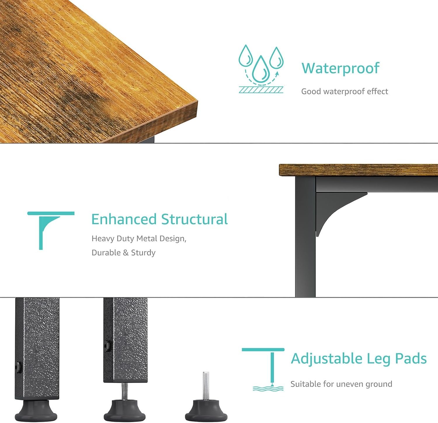 Sturdy Structure: Extra fixed steel brackets and adjustable leg pads provide greater stability, ensure the desktop is level, non-slip & anti-scratch protectors under the legs to protect your floor from scratching and reducing noises when moving.