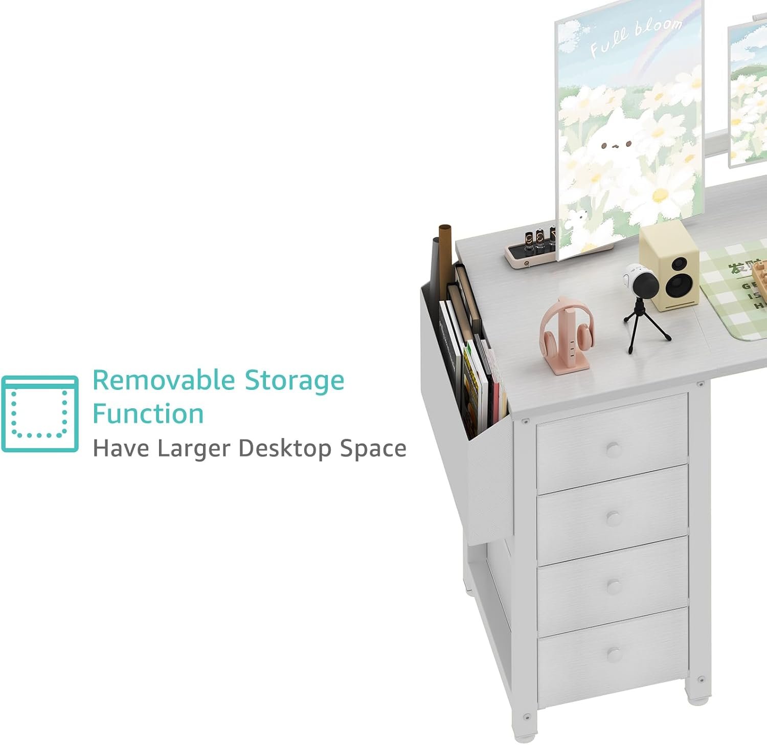 Lufeiya White L Shaped Desk with Drawers & Storage Shelves, 55 Inch Co…