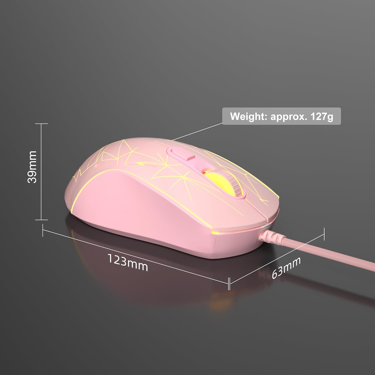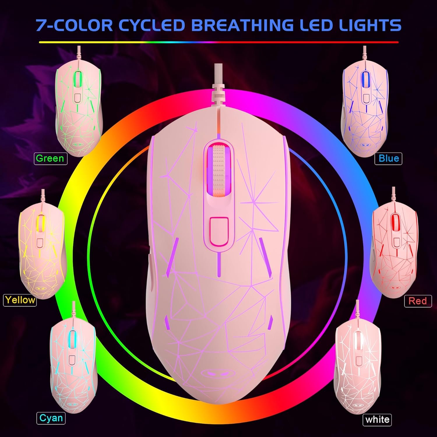 7 Colors Breathing Light: Unique cracking design, combined with 7 cool LED lights (blue, red, green, purple, cyan, yellow and white), brings excellent visual effects. To change the color of the mouse, press the speed button plus the forward side button to lock a certain color. The light can be turned on/off by pressing the speed button for 3 seconds. Excellent cool wired gaming mouse for casual gamers.