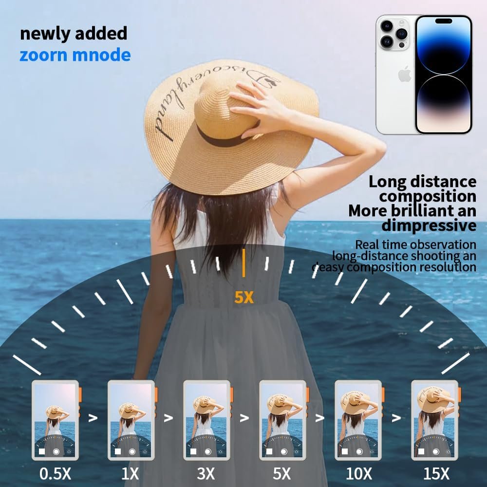 Bluetooth Focus Adjustment for Seamless Shooting:You can adjust the focus of the phone directly on the back camera monitor. When shooting at a distance, you don’t need to walk over to the phone to adjust the focus. The focus can be adjusted to the phone’s focal length: 0.5 to 15 times, which is very convenient. The vlog selfie monitor screen also has three screen brightness options that can be adjusted according to your needs.