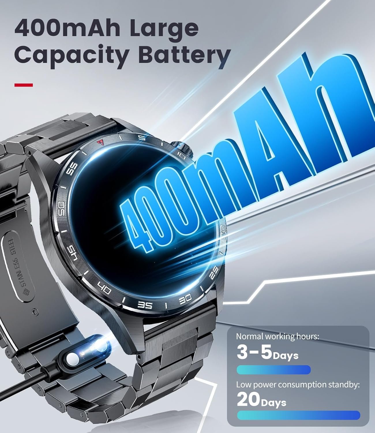 【400mAh Excellent Battery and Military-Grade Performance】: This military smart watch is equipped with a high-efficiency 400mAh lithium-ion battery to ensure excellent battery life. It can be used continuously for 7-10 days under normal operating conditions, and a single charge can achieve a maximum standby time of up to 20 days, meeting your needs for long-term wear without frequent charging. In addition, it adopts magnetic charging technology, which can be fully charged in just 2.5 hours. In addition, the rugged android smart watch has excellent scratch resistance, heat resistance, cold resistance and wear resistance, ensuring its durability even in the harshest conditions.