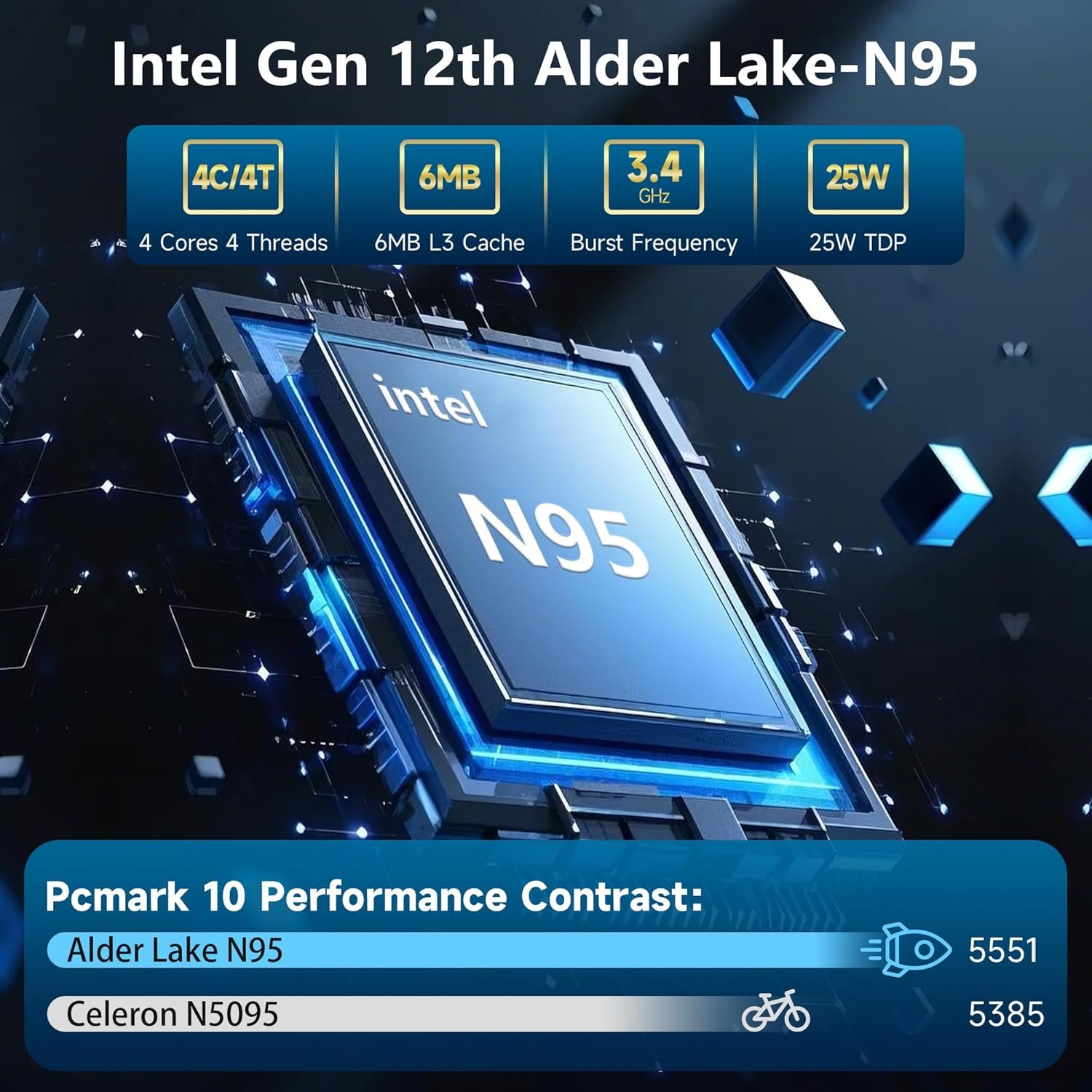 【Latest Processor N95】This mini PC is equipped with the latest N95 chip, delivering smooth multitasking and energy-efficient operation. It is ideal for everyday productivity, streaming and light gaming, and prevents overheating