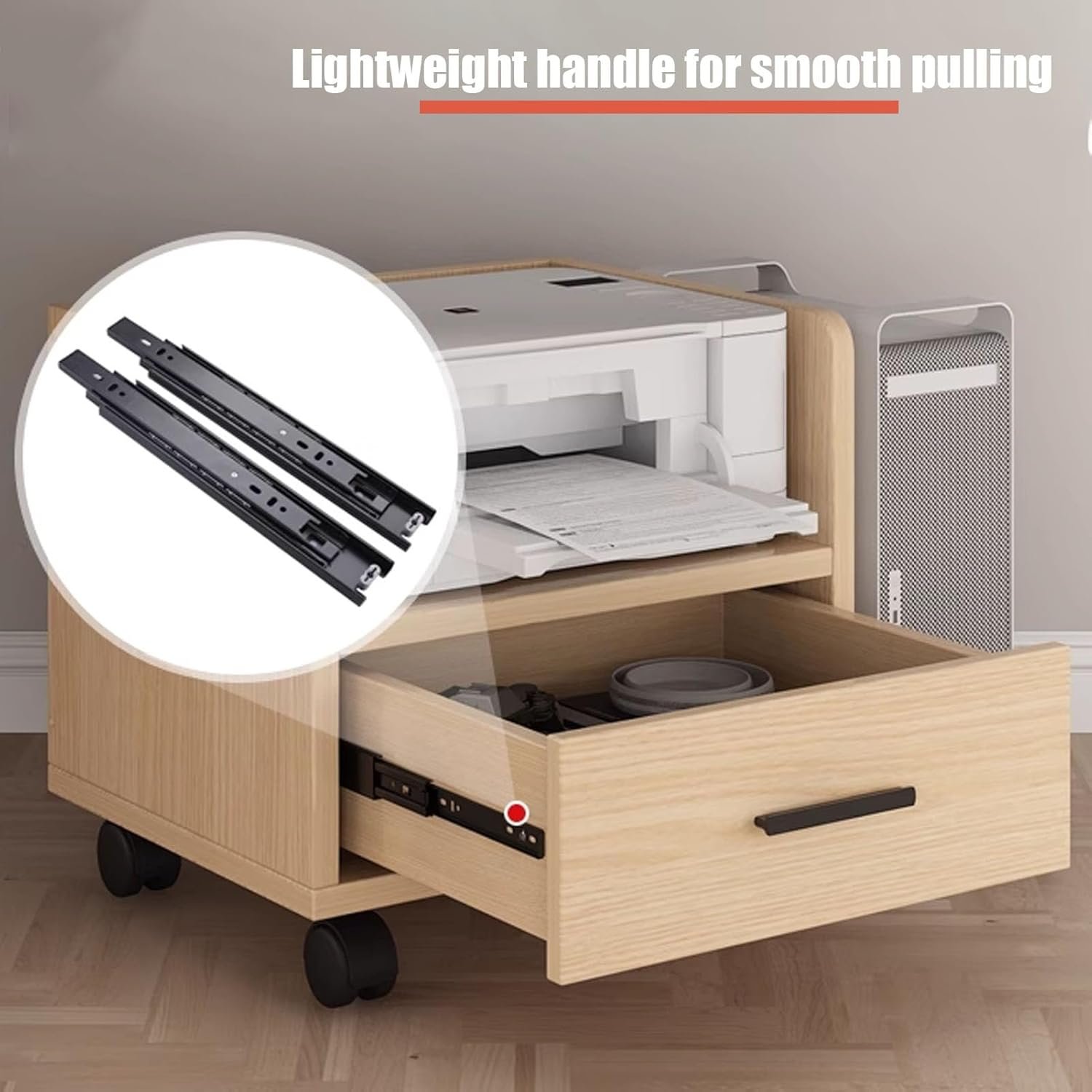 Includes lightweight handles, smooth drawer slides, and a back panel threading hole for clean, safe wiring, making it a practical file cabinet or compact small office desk organizer option