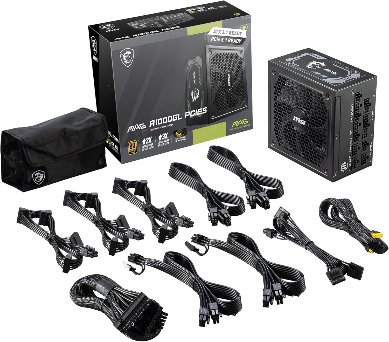 MSI MAG A1000GL PCIE 5 Gaming Power Supply – Full Modular – 80 PLUS Gold Certified 1000W – Compact Size – ATX PSU