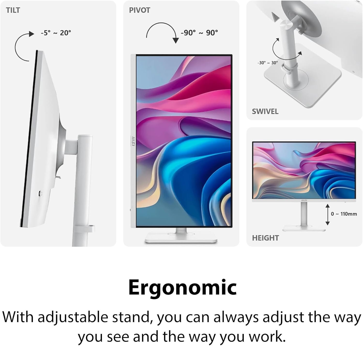 With an elegant, graceful, and sleek exterior design, Modern MD272UPHW Series is designed with a minimalistic look that looks great in any space and desk. It is a piece of elegant furniture & decoration in any space instead of a monitor for sure.