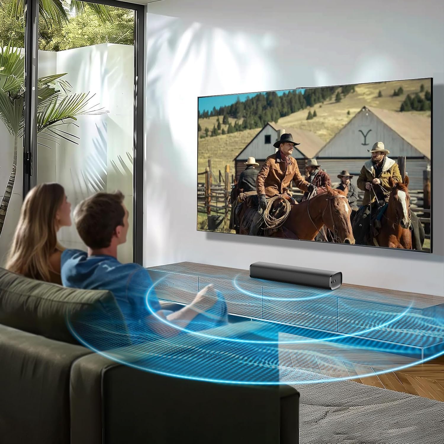 The soundbar significantly enhances your TV’s audio by offering richer sound, clearer dialogue, and deeper bass. With its advanced sound technology, it transforms the audio experience, providing a more immersive and cinematic feel.
