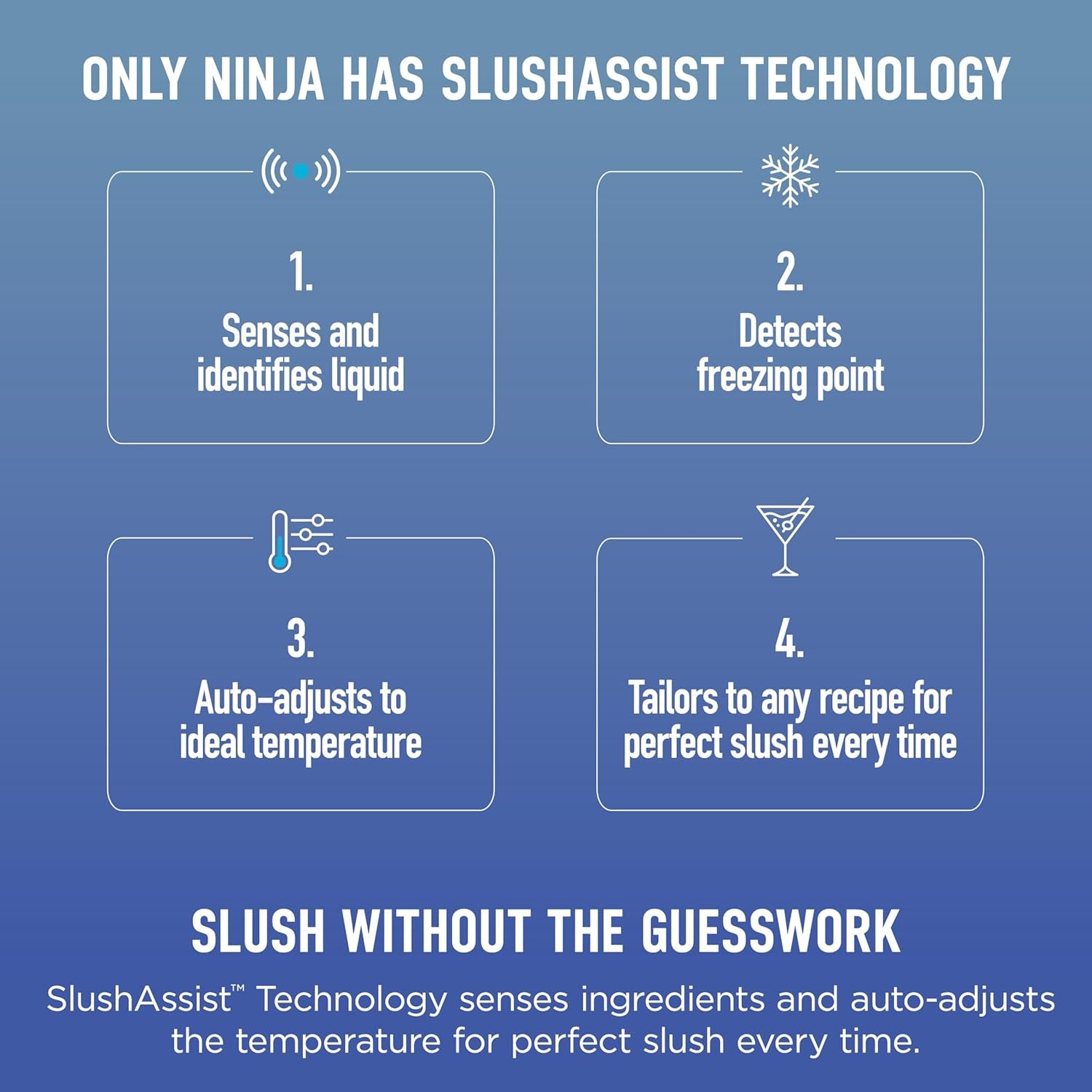 SMARTER SLUSHING WITH ZERO GUESSWORK: NEW SlushAssist Technology senses ingredients and auto-adjusts temperature for perfect slush every time.
