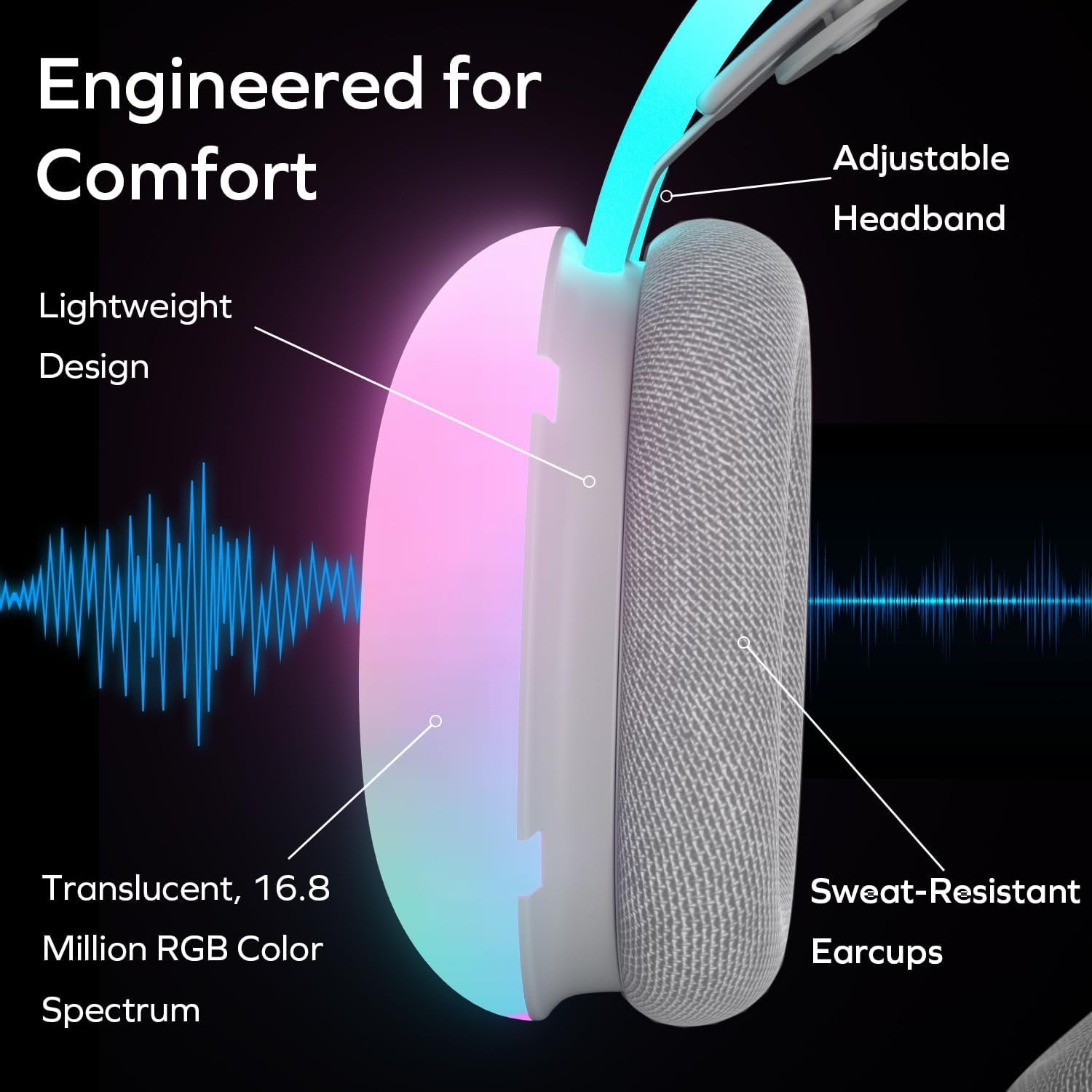 RGB GAMING HEADPHONES: Game in style with these wired headphones that light up with colors from the 16.8-million RGB color spectrum. The 50-millimeter audio drivers deliver surround sound with a 20Hz–10KHz frequency response. This Nova Light headset has a translucent design and is compatible with PCs, tablets, smartphones, and gaming consoles.