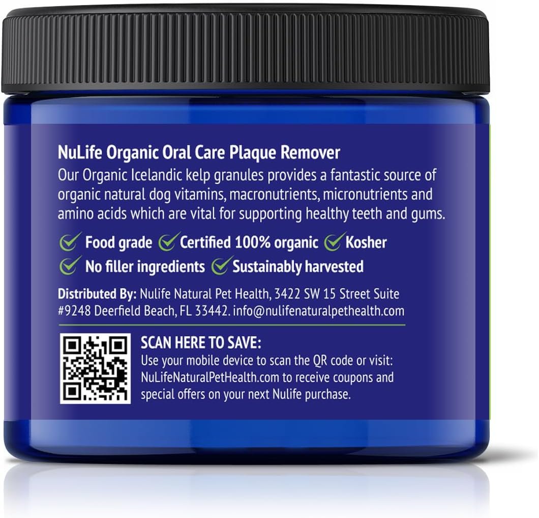 USDA ORGANIC KELP POWER FOR DOGS – Packed with nutrients, our kelp powder for dogs is USDA certified organic and loaded with essential vitamins, minerals, and amino acids. This all-natural pet dental powder supports clean teeth, healthy gums, and happy grins.