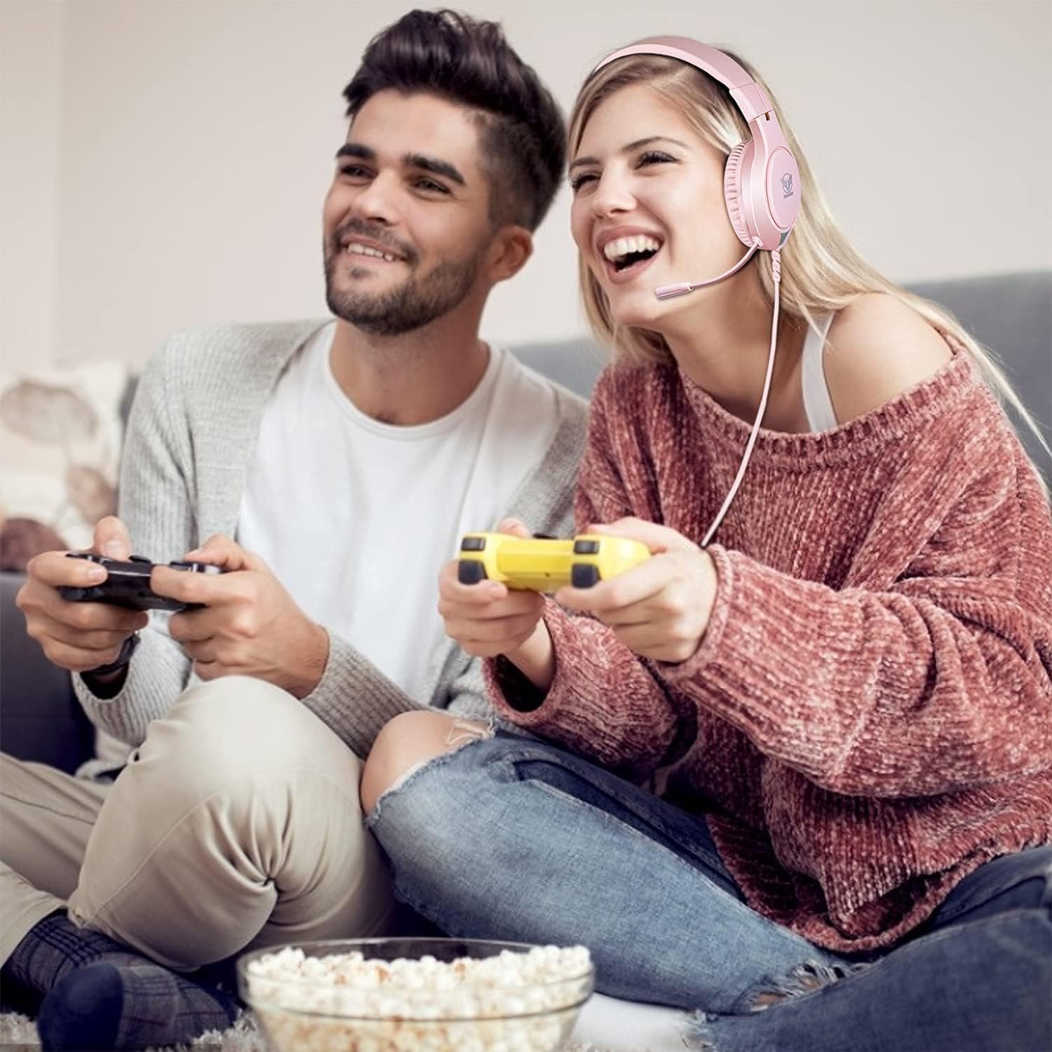Pink Gaming Headset for Nintendo Switch, Xbox One, PS4,PS5, Bass Surro…