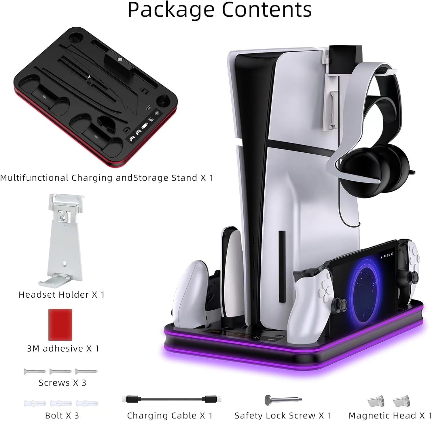 PS PORTAL MULTIFUNCTIONAL CHARGING AND COLLING STATION – The new upgrade multifunctional PS5 cooling and charger station can charge both the playstation portal as well as the ps5 controller (edge controller too). This cooling stand for ps5 is suitable for both ps5 console digital edition, ps5 console disc version and 2023 PS5 slim console (CFI-2000A01 & CFI-2000B01) . ❗ ❗ ❗NOTE: PLEASE TAKE OFF the cover case while charging with the charger station.