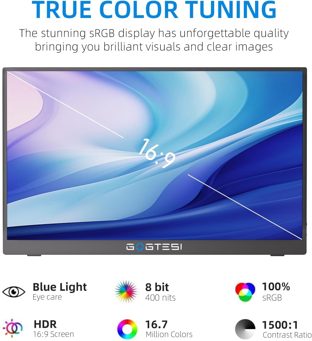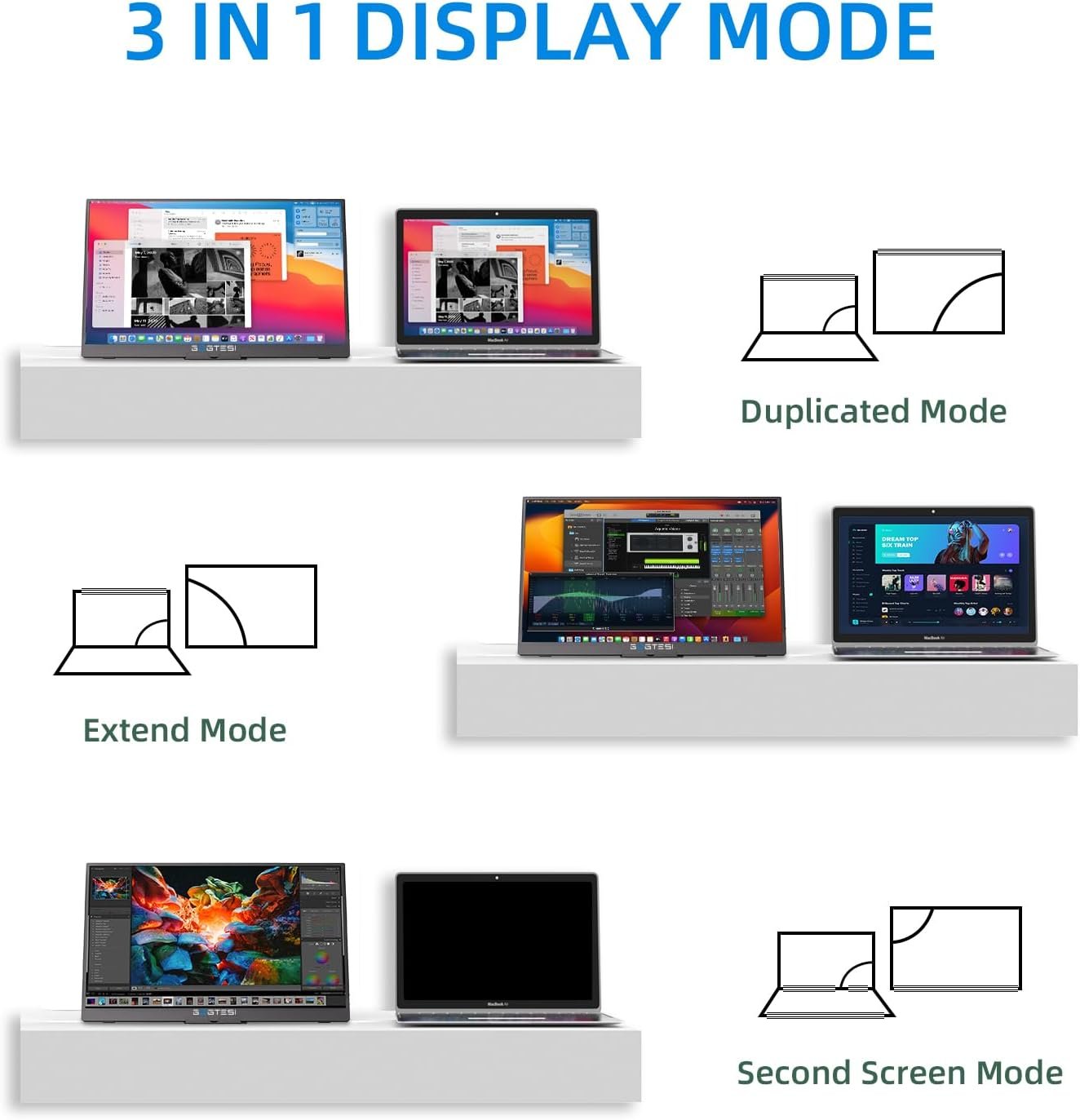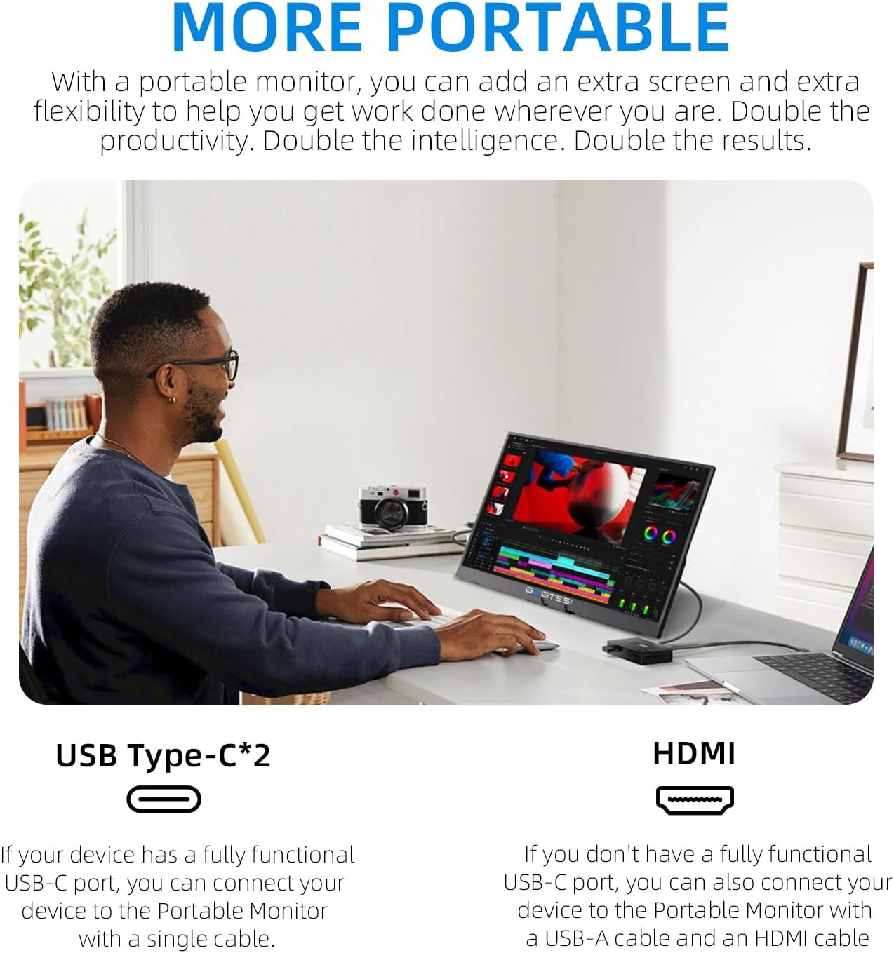 Wide Compatibility: The laptop portable monitor has a full-featured USB Type-C port and Mini-HDMI port, just a USB Type-C or MINI HDMI cable to easily access your favorite devices, suitable for most laptops, Smartphones, Mac, PC, Switch, Xbox, and more. NOTE: Devices without an HDMI port or full-featured Type-C port require an additional adapter.