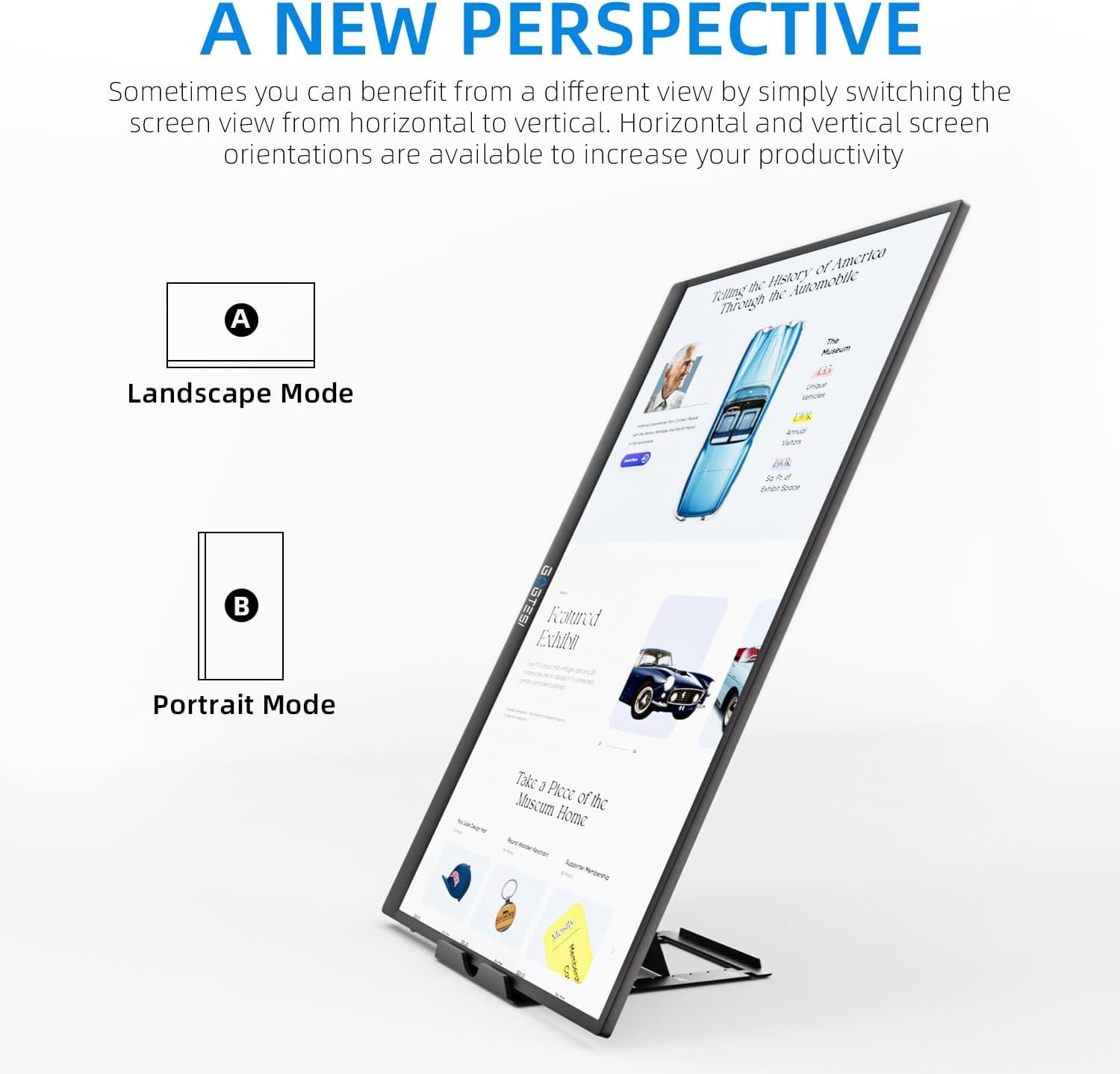 Multiple Display Modes: The portable computer monitor is plug-and-play, with multiple display modes – copy mode/extended mode/second screen mode. You can choose one of these ways and use it as a second screen to increase your productivity at work. You can also switch the horizontal or vertical viewing angle mode for a more comfortable sensory experience.