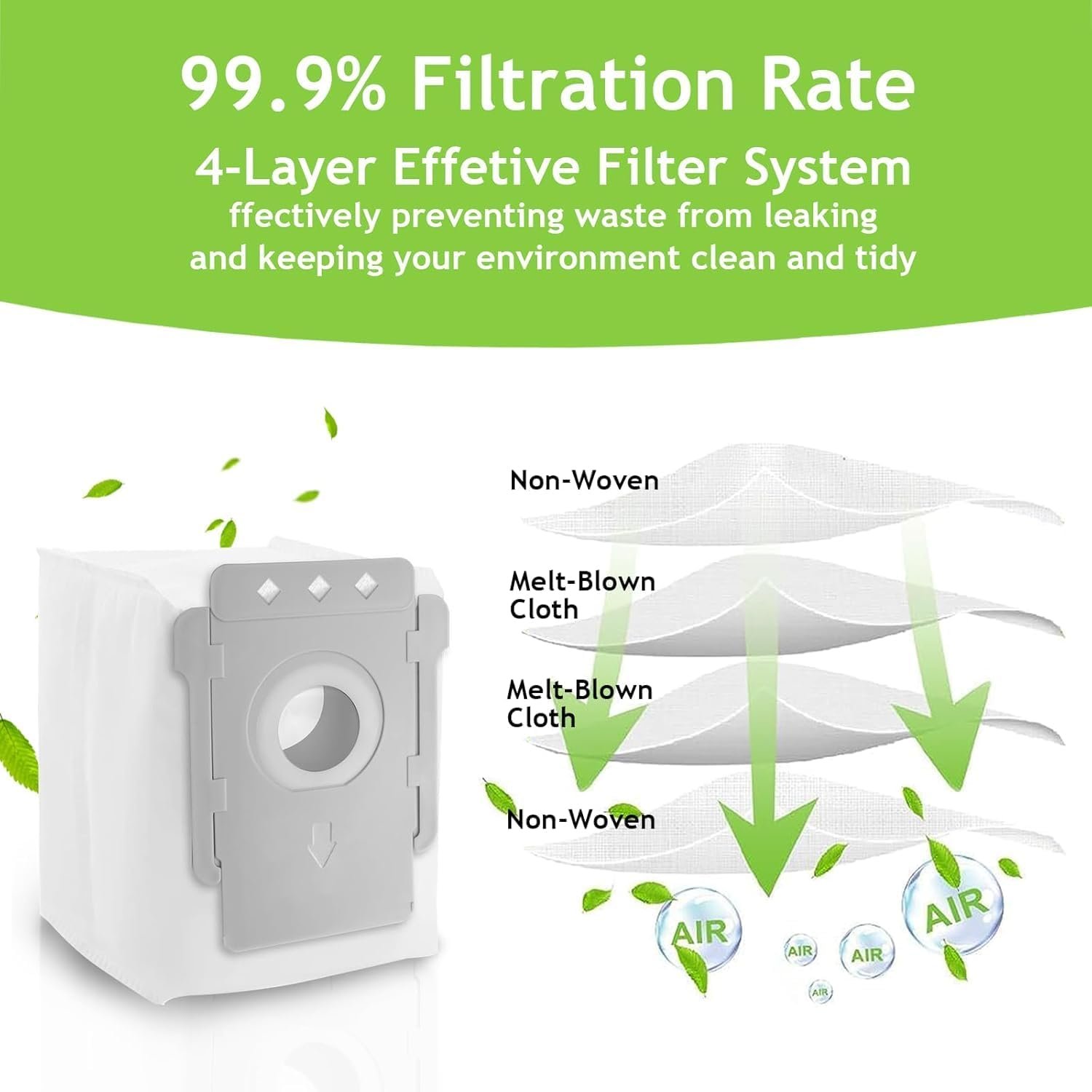 High quality s9 replacement parts are made of eco-friendly materials, two rubber roller brushes are a perfect match, one removes dirt and the other sweeps it away.Each dust bag holds up to 30 bins of dirt and debris. Easy to handle, no dust clouds. Side brushes reach deep into corners and edges to remove more dirt and debris