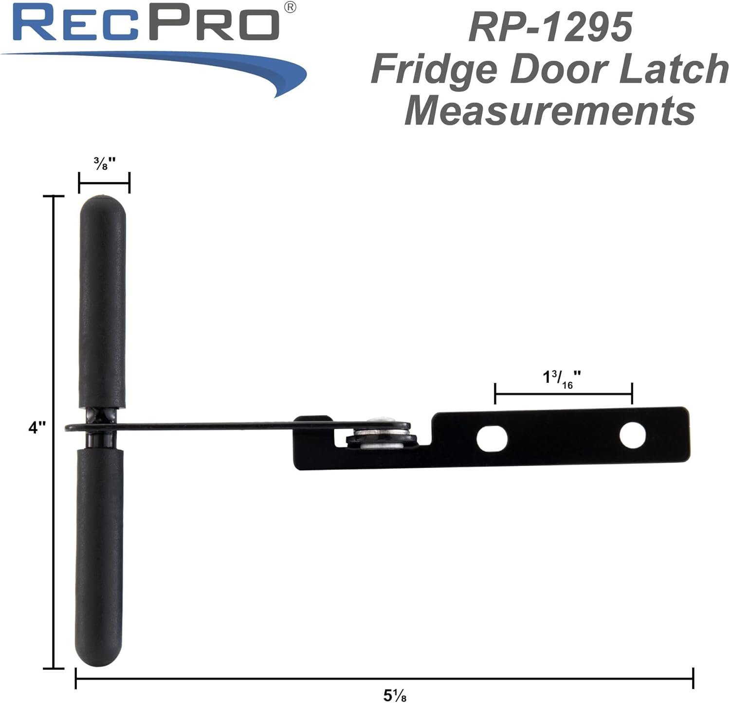 RV Refrigerator Door Latch1-3/16″ hole spacingSecures fridge doors when traveling and for storagePrevents damage from opening refrigerator doors during travelSwings to the side during use for easy access180-degree motion, fully to either sideDual-sided handle with comfort gripMaterial: Metal constructionEasy installation and useDoes not include installation screws