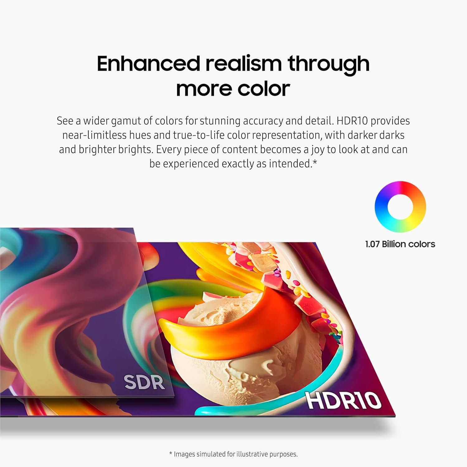 ENHANCED REALISM THROUGH MORE COLOR: HDR10 provides near-limitless hues and true-to-life color representation with deeper contrast for darker darks & brighter brights; Content becomes a joy to look at and can be experienced exactly as intended¹