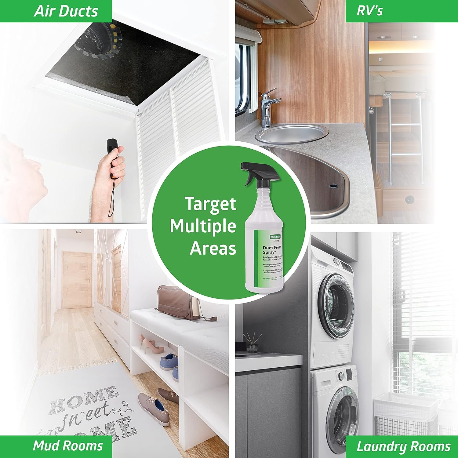 Ensure your air stays fresh with the SimpleAir Duct Fresh Spray HVAC Air Freshener. Engineered for comprehensive odor removal, this non toxic air freshener doesn’t just mask odors but eliminates them entirely, providing a “whole house” freshness. Easy to use, simply spray liberally into HVAC ducts, air filter media, or any musty areas like closets, basements, RVs, or boats for safe and effective odor removal. The professional-strength formula is highly effective, versatile, non-staining, and non-toxic, offering peace of mind as it removes odors safely. Target stubborn odors with precision using the spray formula, ideal for lockers, storage areas, laundry rooms, or any spaces in need of refreshing. Trusted in homes, offices, nursing homes, and more, this versatile odor neutralizer conquers even the toughest odors. Simplify your HVAC maintenance with SimpleAir, providing professional-quality products for easy home repairs and maintenance. SimpleAir® is an innovative line of professional quality products that allow you to quickly and easily handle most repairs and regular home HVAC maintenance yourself.