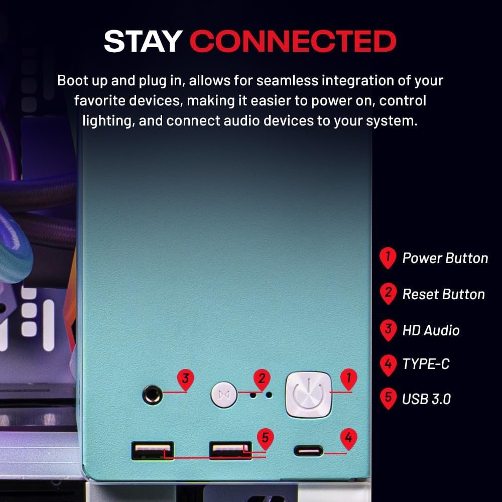 High-spec AIO liquid coolers used, delivering unmatched cooling performance for a perfect operational experience and unparalleled cooling performance. With hardware unrestricted by temperature limits, you can unleash its full potential. Whether gaming, creating, or working, you’ll never suffer from thermal throttling again. | Skytech Aqua Case with Dual Tempered Glass & Display Platform, Blue/White Edition | 1 Year Warranty on Parts and Labor | Free Technical Support | Assembled in the USA