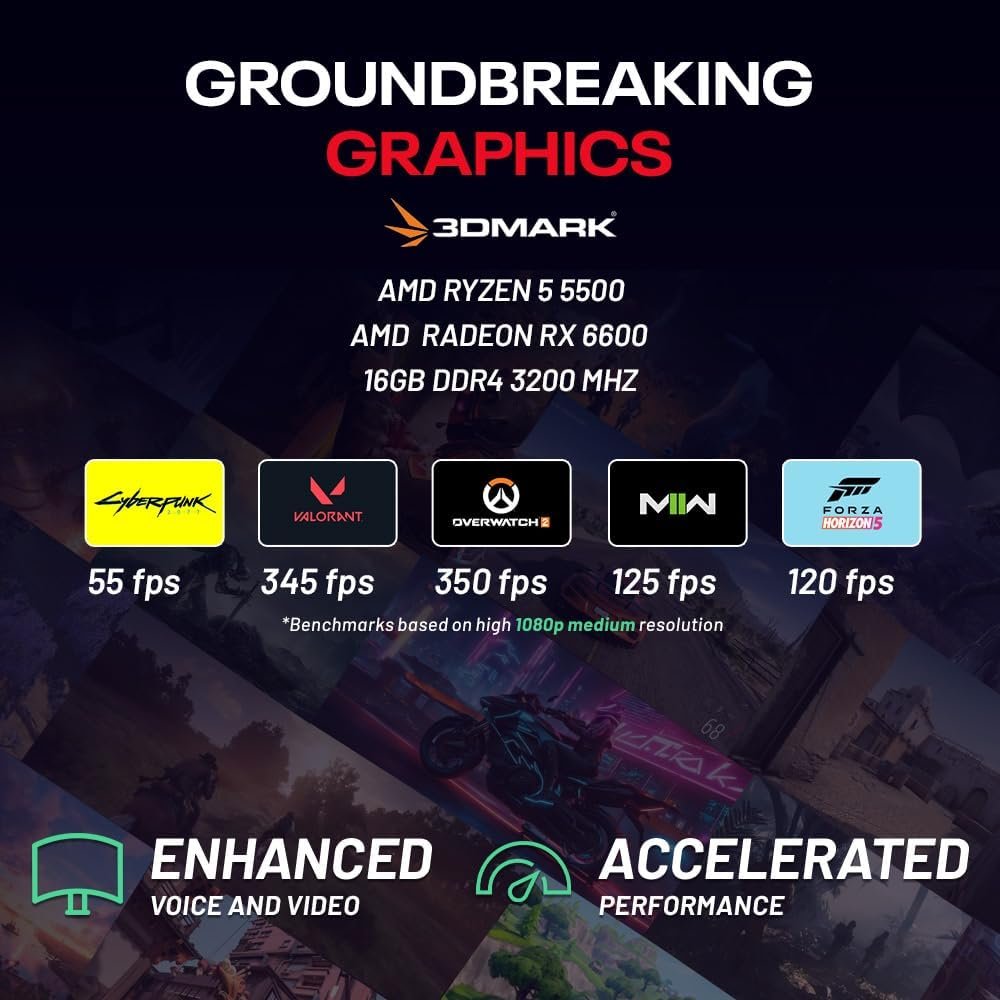 AMD Radeon RX 6600 8GB GDDR6 Graphics Card (Brand may vary) | 16GB DDR4 RAM 3200 Gaming Memory with Heat Spreader | Windows 11 Home 64-bit