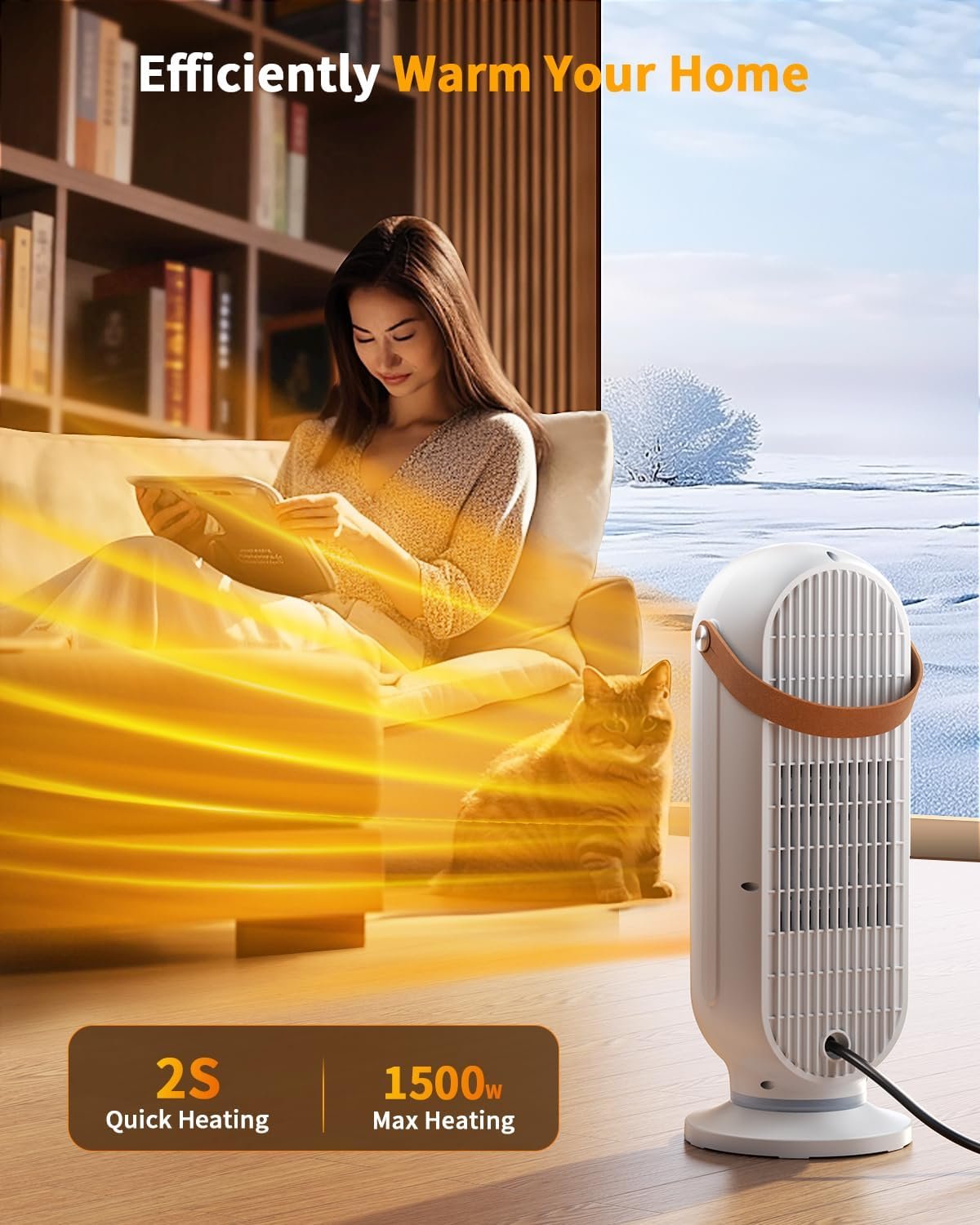 Warmth in Every Corner: With a 90° oscillation feature, this heater evenly distributes warmth throughout the room, reaching every corner. It’s ideal for bedrooms, garages, basements, offices, and desks. Customize the heat direction to a specific spot or enjoy wide-ranging coverage