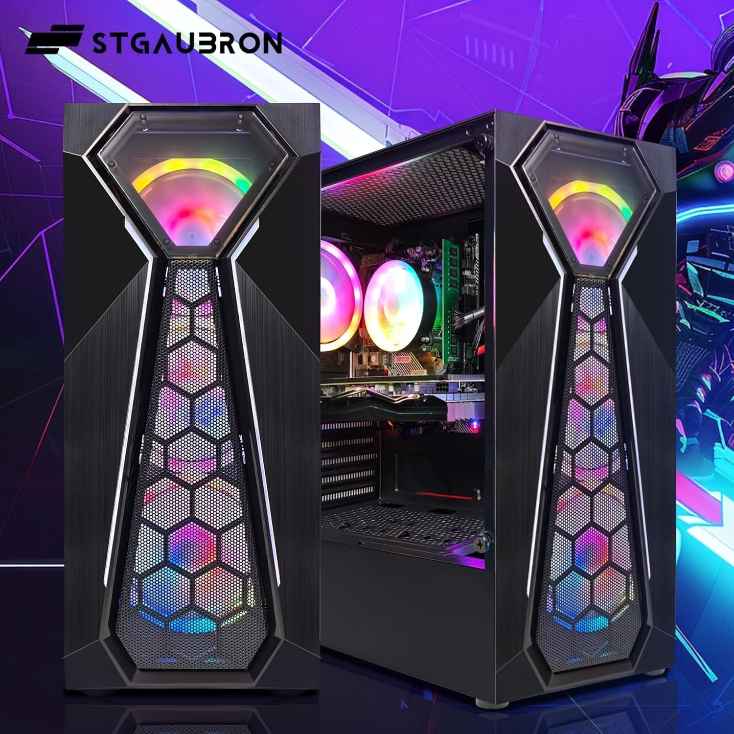 STGAubron Gaming PC Computer Desktop, Intel 10th Gen G5905 3.5GHz, Radeon RX 580 8G, 16GB RAM, 1TB SSD, WiFi, BT 5.0, RGB Fan x4, Windows 11 Home
