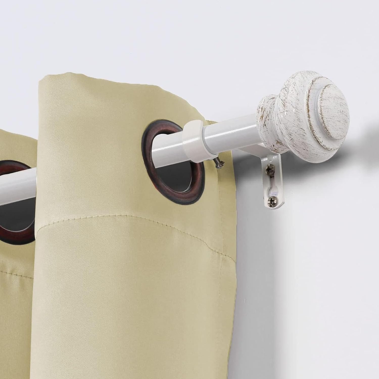 MATERIAL: Crafted from durable metal/steel on rods and hardware accessories, and resin finials. Long-lasting and strong enough that can withstand the heavy curtains up to 15 lbs