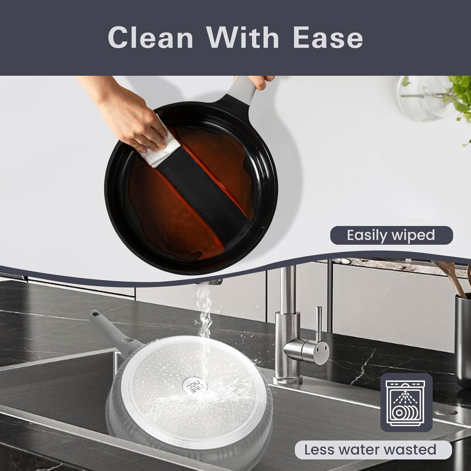 Easy to Clean – Spend less time scrubbing, more time cooking. Simply wipe with a sponge or rinse under water to clean these pans sets—no soaking, no scrubbing, no stress.