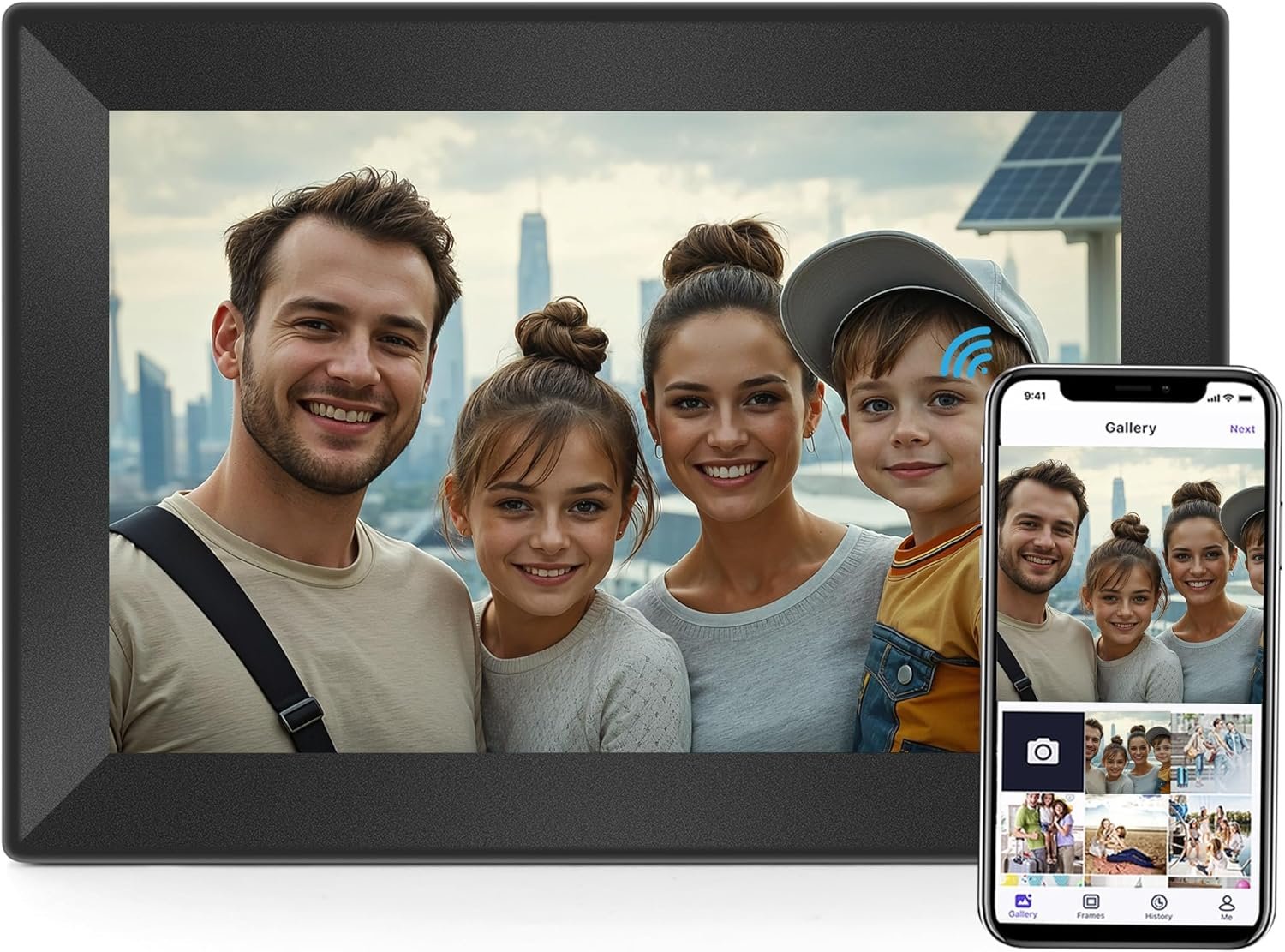 Easy setup: smart Digital Frame Simply enter the connection code to complete the connection (totally free), and there is no user limit. You can share your connection code with your friends,Once connected, they can send photos and videos to the frame at will.