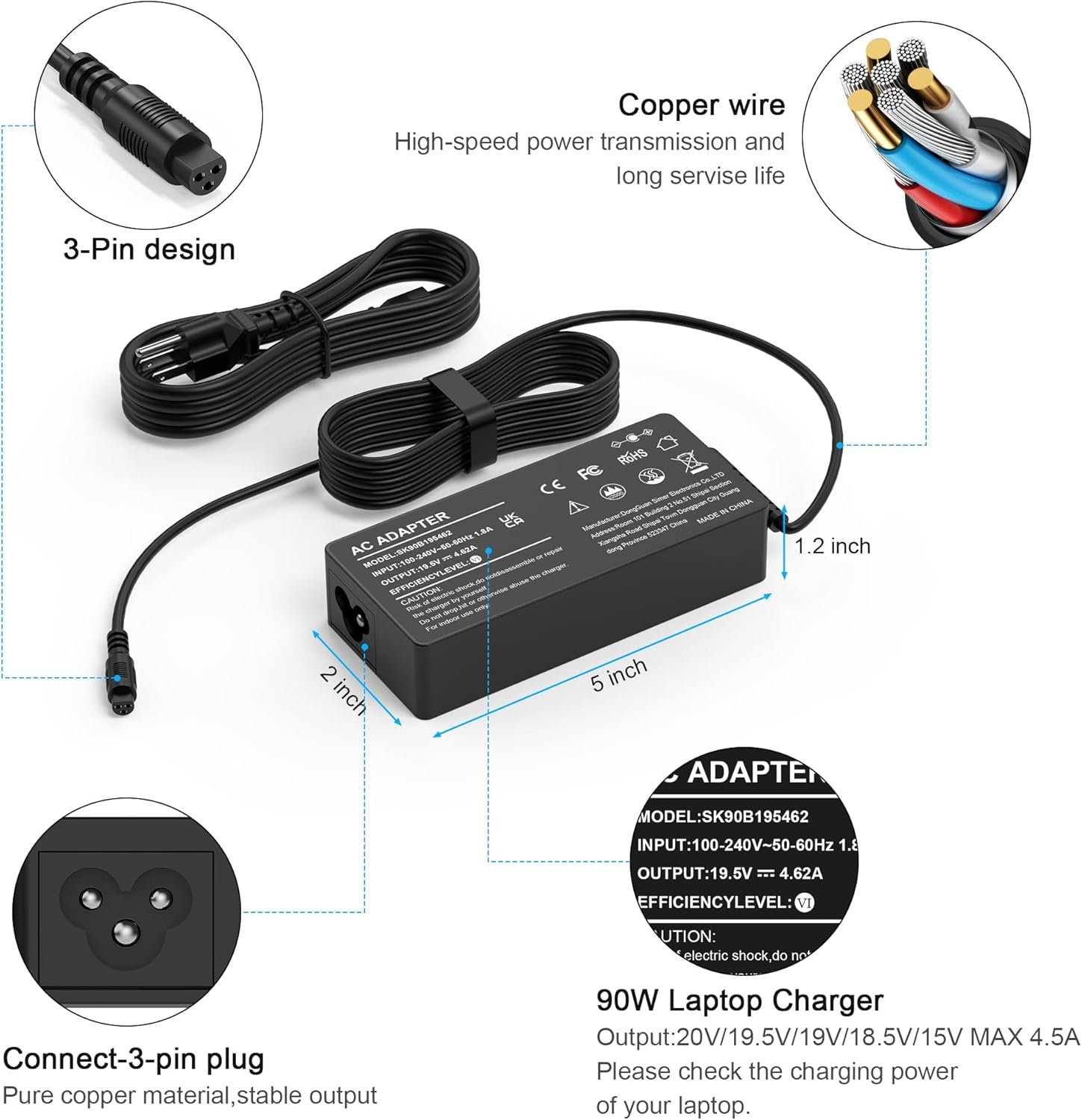 【input & output】Input:100-240V 50~60Hz worldwide.Output:15V 16V 19V 19.5V 20V,4.5A compatible Laptop power adapter 90W 75W 70W 65W 45W 40W 33W. Not compatible with devices’ voltage higher than 90W,Any problems, Please contact us