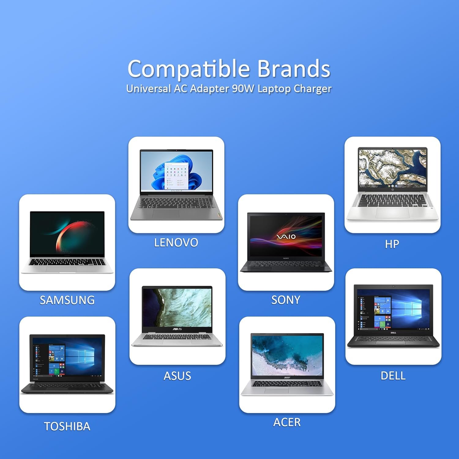 【universal charger adapter】 Compatible with LENOVO ThinkPad Z60 T410 SL400 SL510,Ideapad yoga 2 pro 11 11s 13;ThinkPad Yoga 14 20DM 20FY 15 20DQ 260 370 460;Compatible with Asus Zenbook UX21E and UX31E,ASUS X551MA F555LA-AB31 X550ZA-WH11 X551 X555LA K501UX ; Chromebook C200 C200MA C300T300LA C300MA X553M, VivoBook;Compatible with Toshiba Chromebook 2 13.3 inch CB35 CB30, Satellite C55-C5241,P755 P870 P875 S855 U305 U505;Compatible with Sony VAIO VGP-AC19V39 VGP-AC19V47;Compatible with Fujitsu Lifebook; Compatible with Gateway NV55C;Presario Evo vostro pro Folio OMEN AcerNote Extensa series