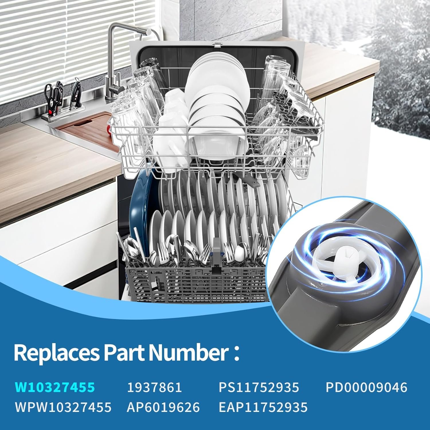 Upgraded WPW10327455 Dishwasher Spray Arm: The WPW10327455 W10327455 dishwasher upper spray arm replacement dimensions of 5.3” x 1.74” x 0.79”. It is specially designed for specific Whirlpool Dishwasher models and is located on 3rd Level Spray Arm. The WPW10327455 Upper Spray Arm for Whirlpool replacement parts features precision circular ABS plastic mounting slots for a perfect fit in your dishwasher. enabling seamless integration and easy installation
