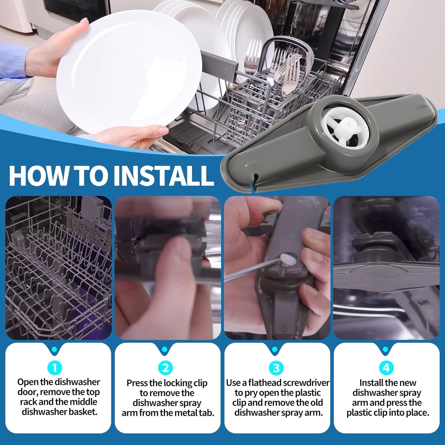 ABS Plastic Material – Stability and Durability: This WPW10327455 upper spray arm replacement for Kenmore dishwasher is made of reinforced ABS material. Even with frequent daily use, it resists wear and deformation. Featuring precision circular ABS plastic mounting slots, it securely and firmly installs on the dishwasher’s 3rd-level spray arm. It effectively addresses issues such as unclean dishes, water leaks, drainage problems, and operational noise, while meeting strict OEM standards