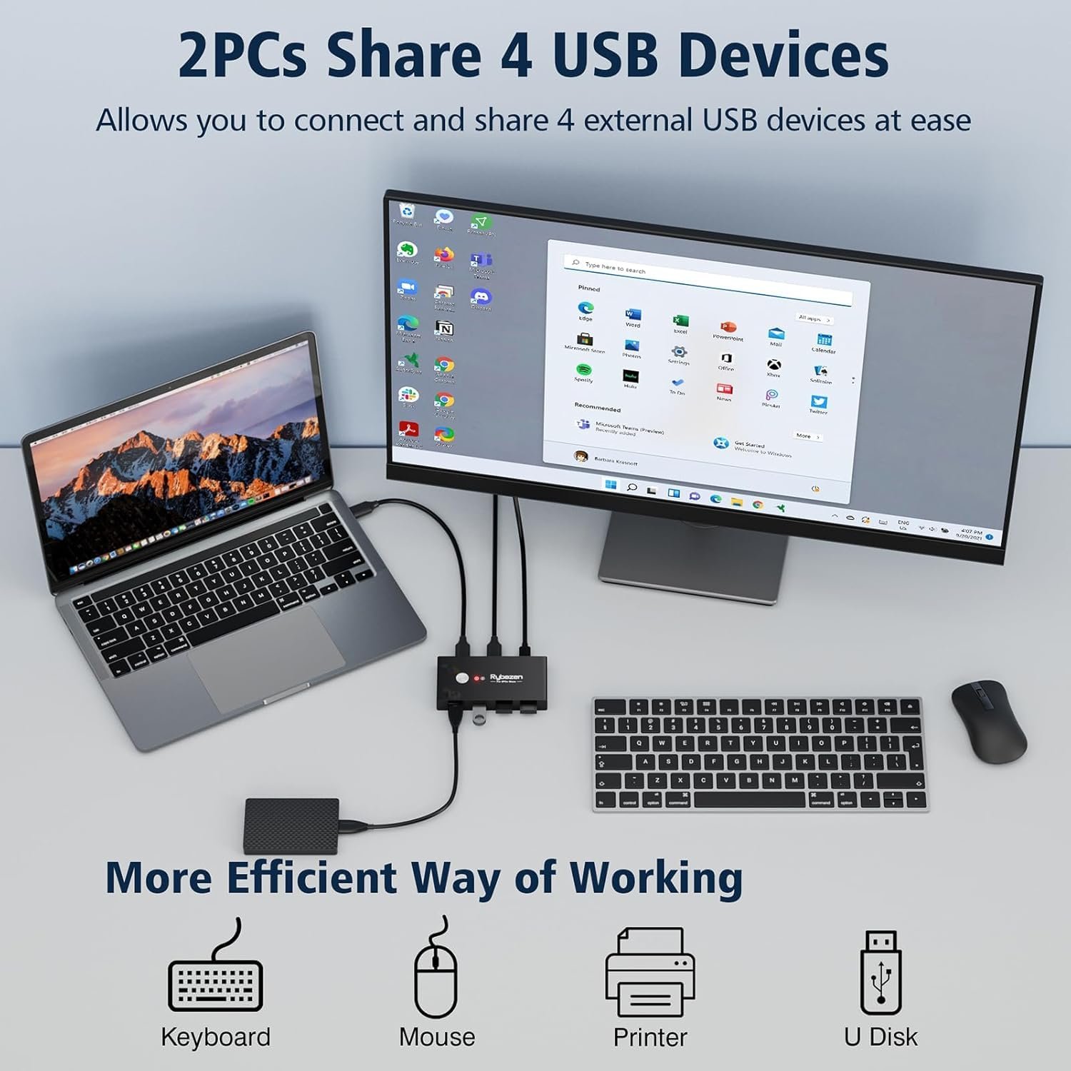 【Great Compatibility, Driver-free】4 port USB switch selector for Windows 10/8/8.1/7/Vista/XP and Mac OS X, Linux, and Chrome OS, simply plug and play.