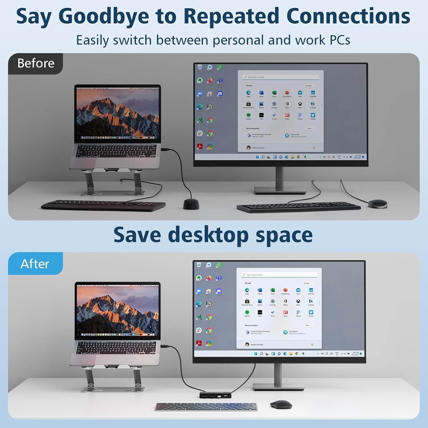 【One Button Switch,Multiport Connection】USB switcher easily switch between 2 computers by a single click on the button with LED indicating the active computer.save your desk space when you need to use two computers,you can easily switch between 2 computers and usb devices without all the clutter. No need to plug and unplug usb cable back and forth anymore,making your work much more convenient and efficient.