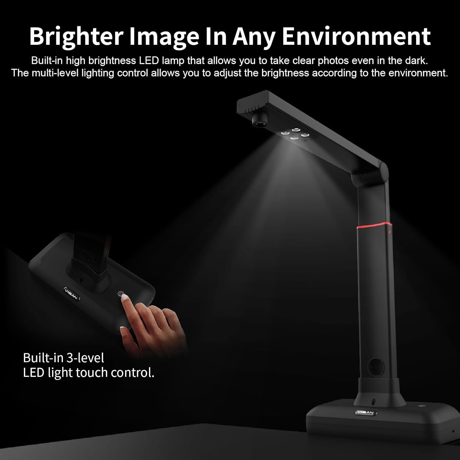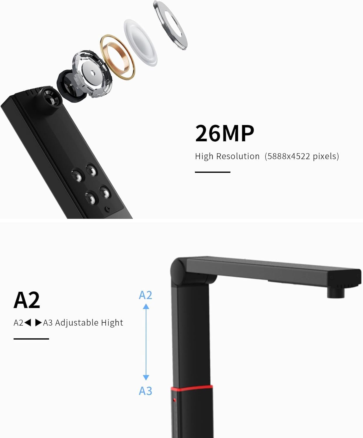 【Excellent Scanning Quality】 The S21 USB document camera features a high-resolution image sensor that captures stunning details with up to 26MP clarity, 300 DPI, 5888*4522 Resolution. This versatile book scanner can take snapshots of books, documents, business cards, 3D objects, and even record videos for remote collaboration. Note: Highly reflective papers are not recommended.