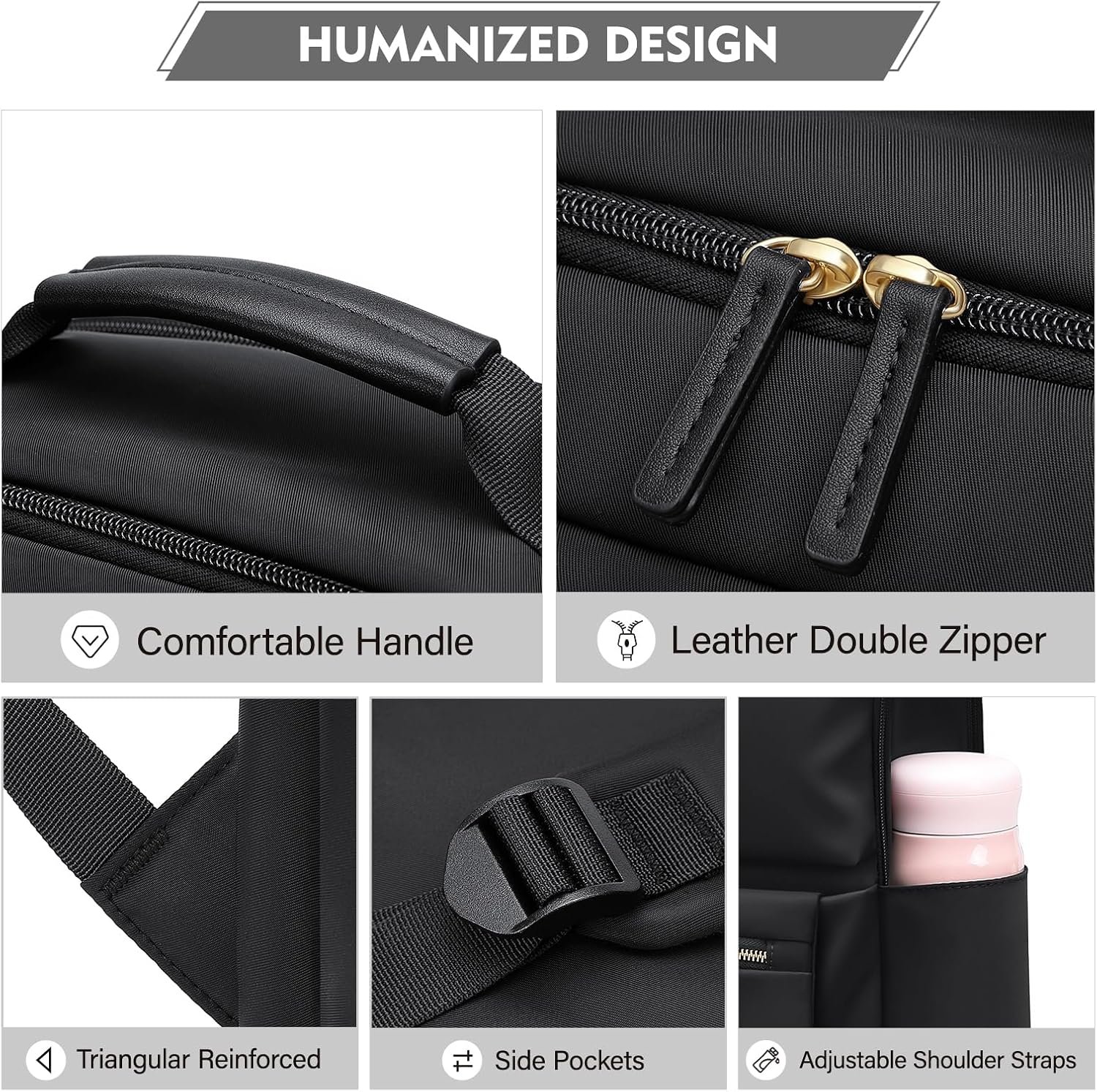COMFORTABLE AND DURABLE: Laptop backpack is made of anti-scratch and waterproof fabric which is sturdy. The bottom is PU leather, which makes the women backpack more wear-resistant. The ergonomic shoulder strap design can release the pressure on your shoulders