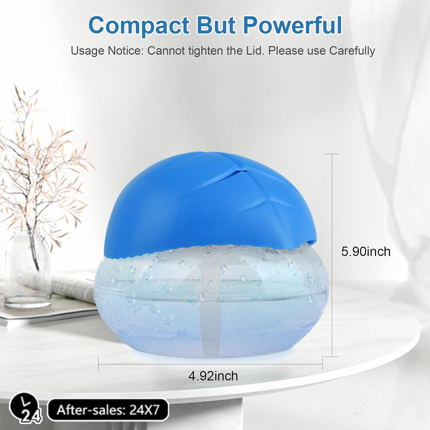 Purchase & Use Note: The Top Lid is designed to be in a Non-Closed state for easy add and change the water, Cannot Turn to Tighten, please use it carefully.