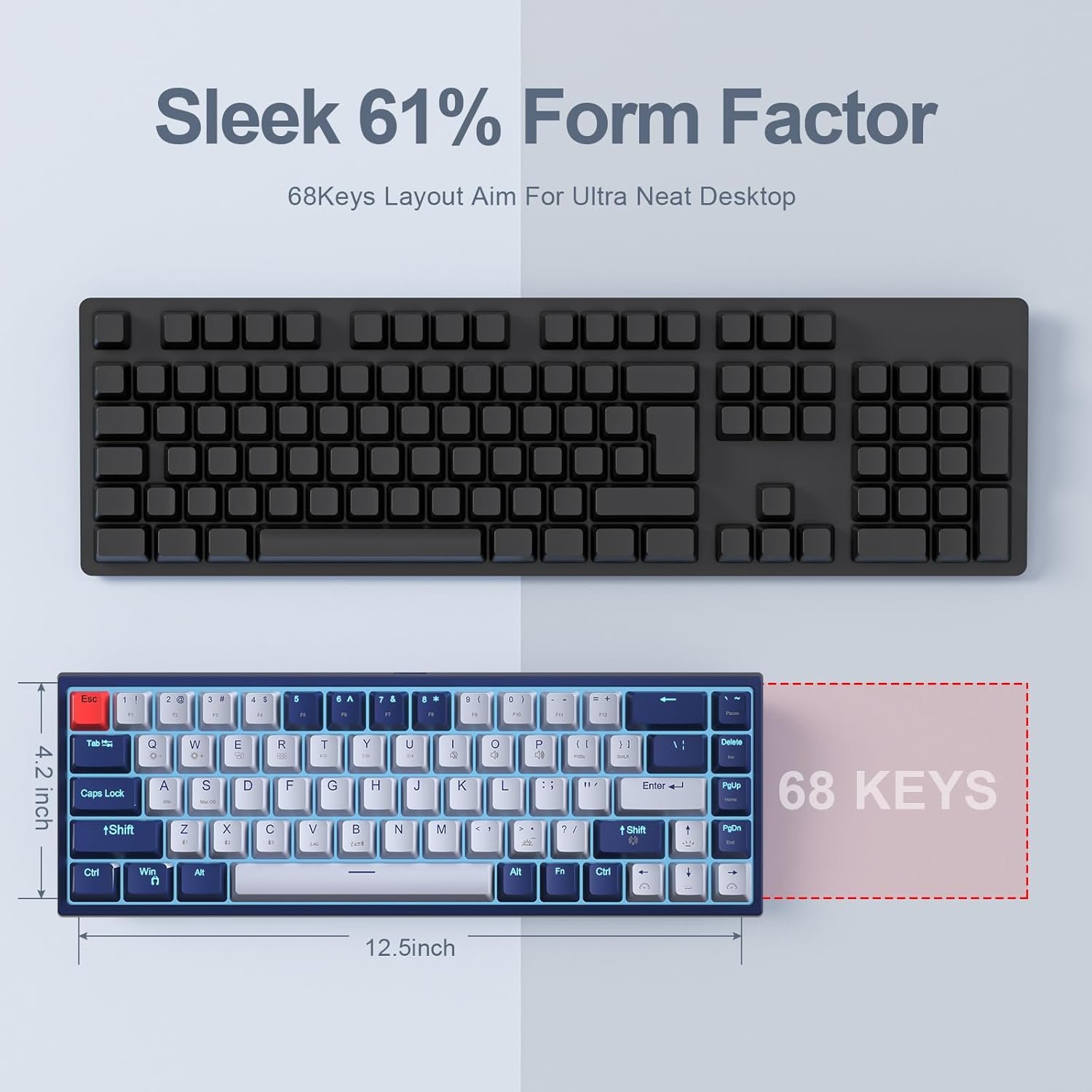 【Mini Portable 60% Layout Keyboard】MK530 is a 68-key mechanical keyboard, compact size, adding separate arrow keys and “Del” keys, saving space while providing you with all the functions of a normal keyboard .