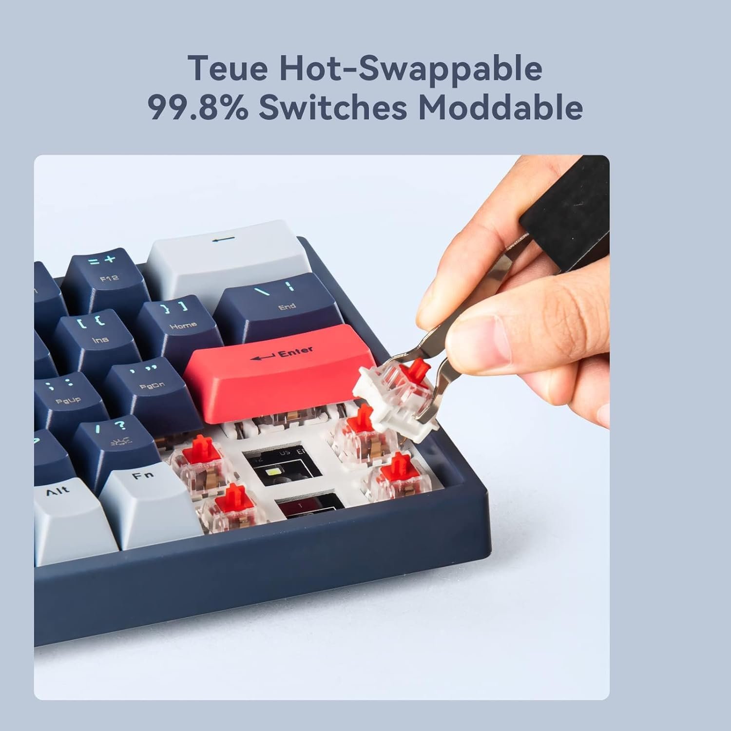 【Hot-swappable Custom Keyboard】The switches and keycaps can be freely replaced(keycap/switch puller are included in the package).This customizable keyboard with hot-swap PCB allows users to replace 3 pins/5 pins switches easily without soldering issue.