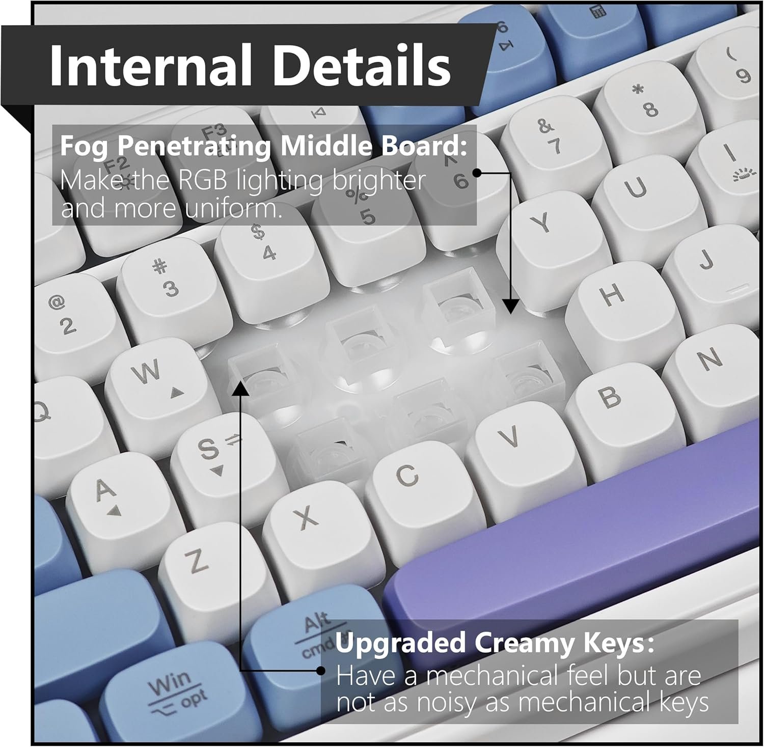 💎 Upgraded Creamy Keys: They have the feel of mechanical keys but are not as noisy. They are smooth when tapped and provide a strong feedback.