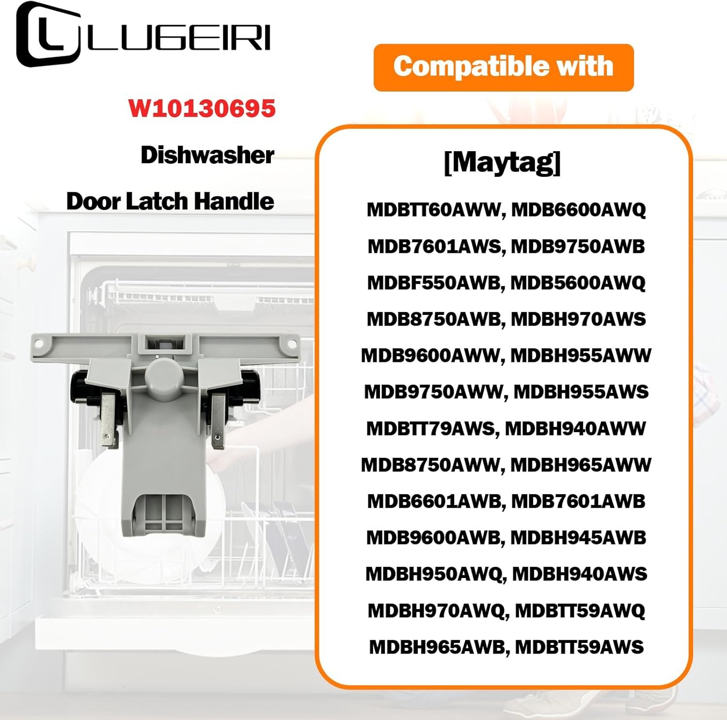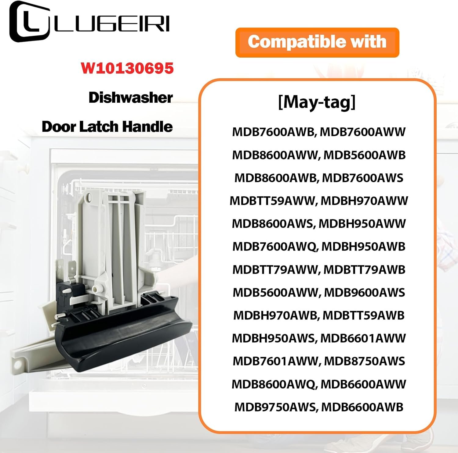 LUGEIRI CUSTOMER SERVICE: We attach importance to customers‘ purchasing feeling, if you have any doubts about the matching model of this w10130695 dishwasher door latch handle for may-tag dishwasher mdb5600aww, we will help you