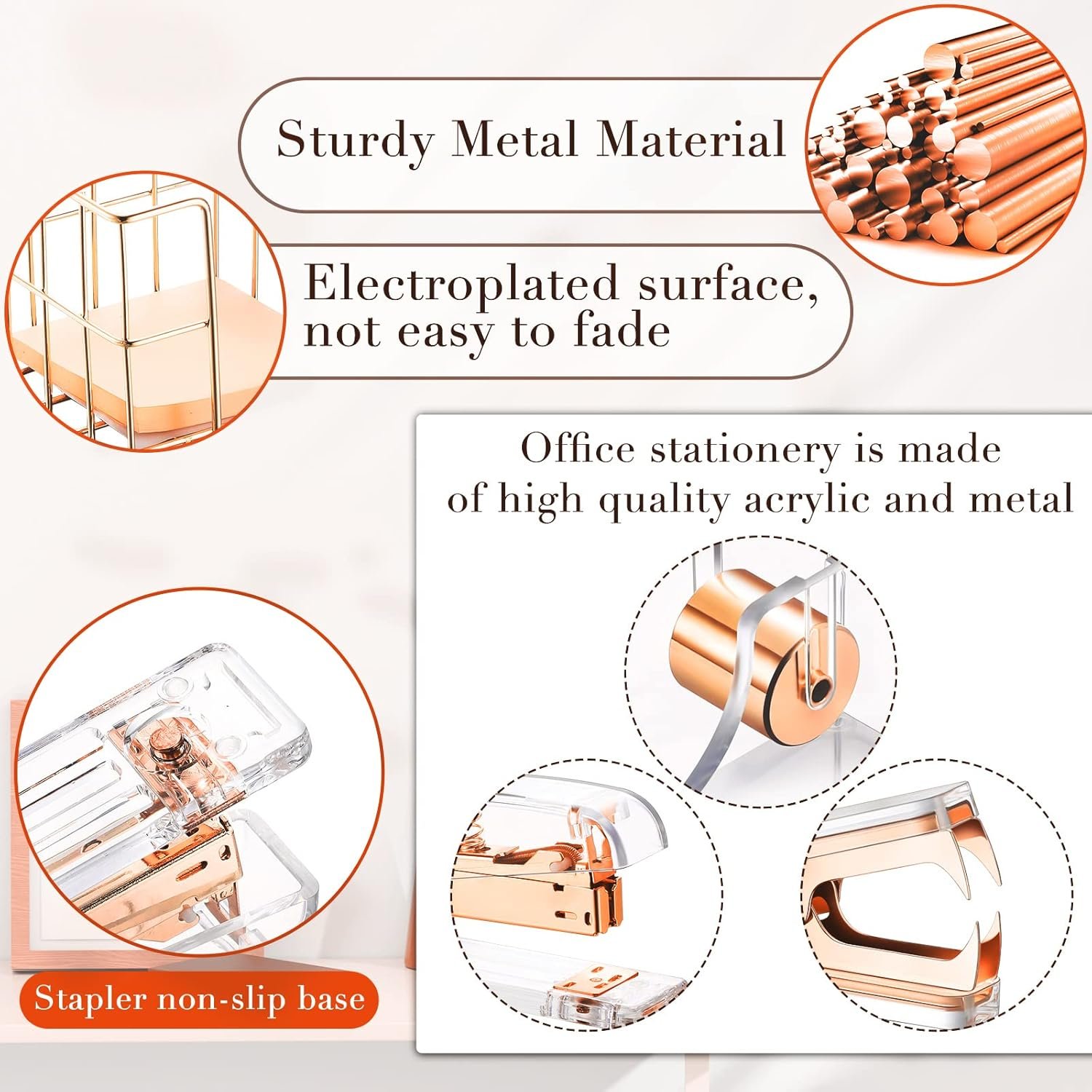 Reliable Materials: our stapler, tape dispenser, and stapler remover are made of acrylic and metal, which are clear, smooth, comfortable to touch, and not easily broken; These accessories are built to last for a long time and suitable for desktop office supplies